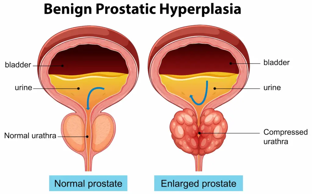 La próstata rodea la uretra (el conducto por el que sale la orina). Con la edad, la glándula puede aumentar de tamaño y generar obstrucción parcial al paso de la orina. Esto provoca que la vejiga trabaje “de más” y con el tiempo aparezcan síntomas urinarios.